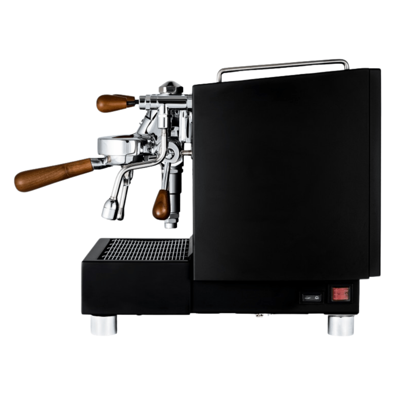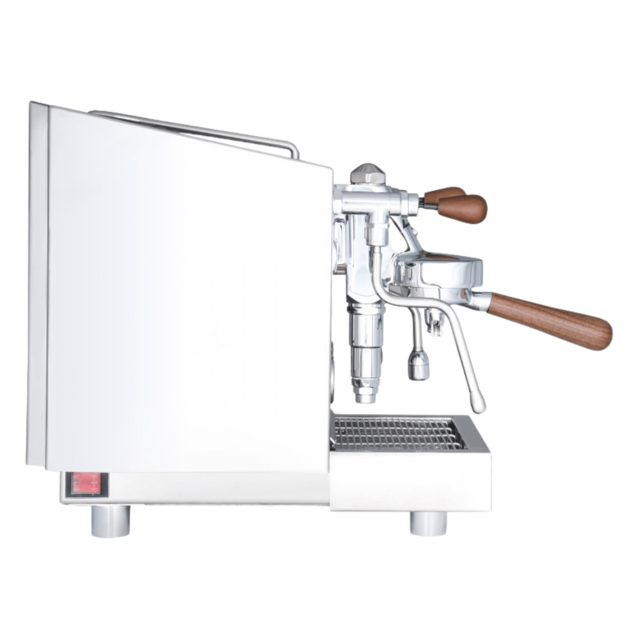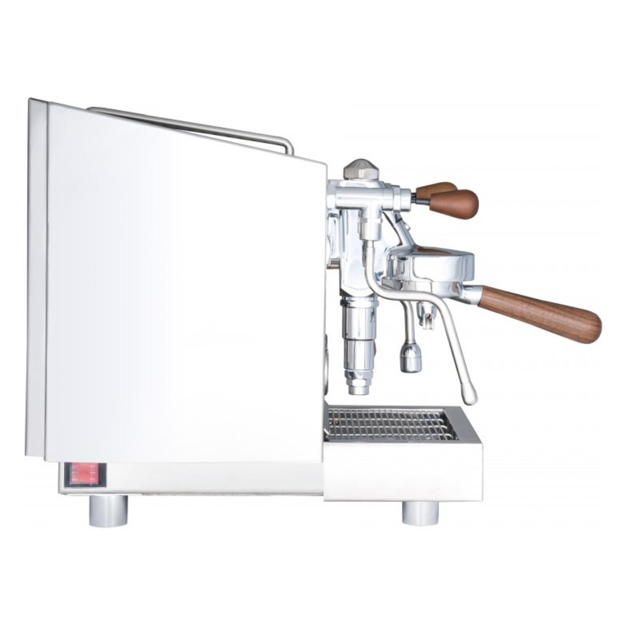Izzo Alex PID Plus comes in a matte black, matte white, or mirror-finish 304 stainless steel finish, with beautiful rounded heat-protective body side panels and a selection of different coloured accents (black, white, red or wood levers, knobs, portafilters & tamper).