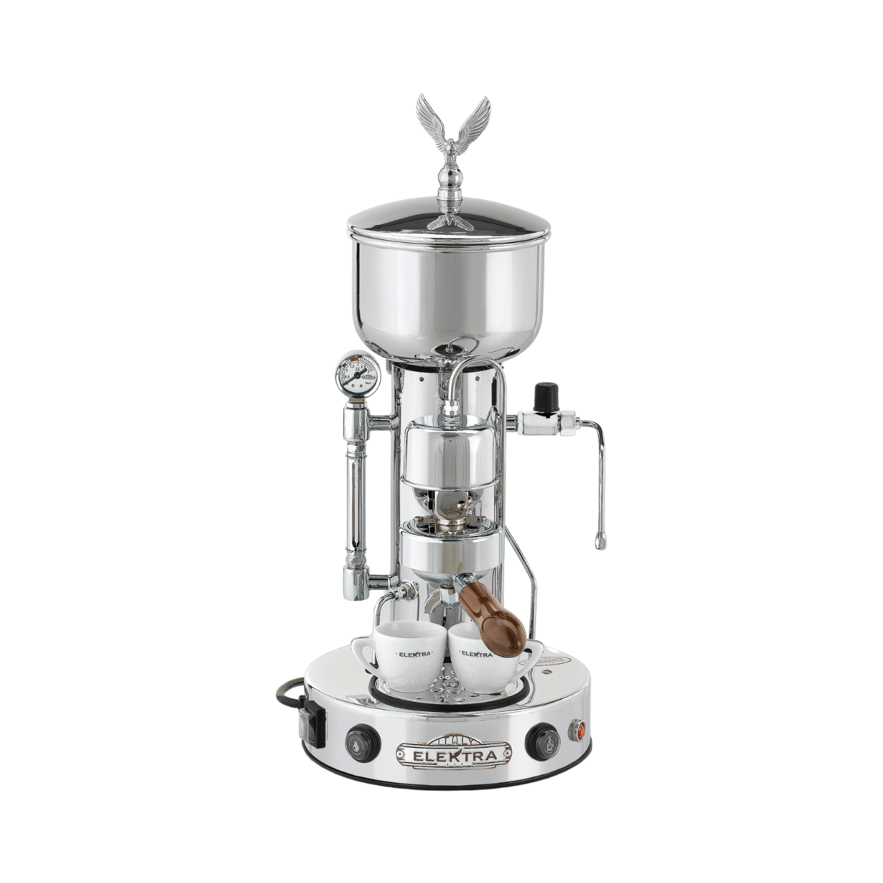 Elektra MicroCasa SemiAutomatica is a statement machine available in two gleaming metal finishes designed to complement any décor.