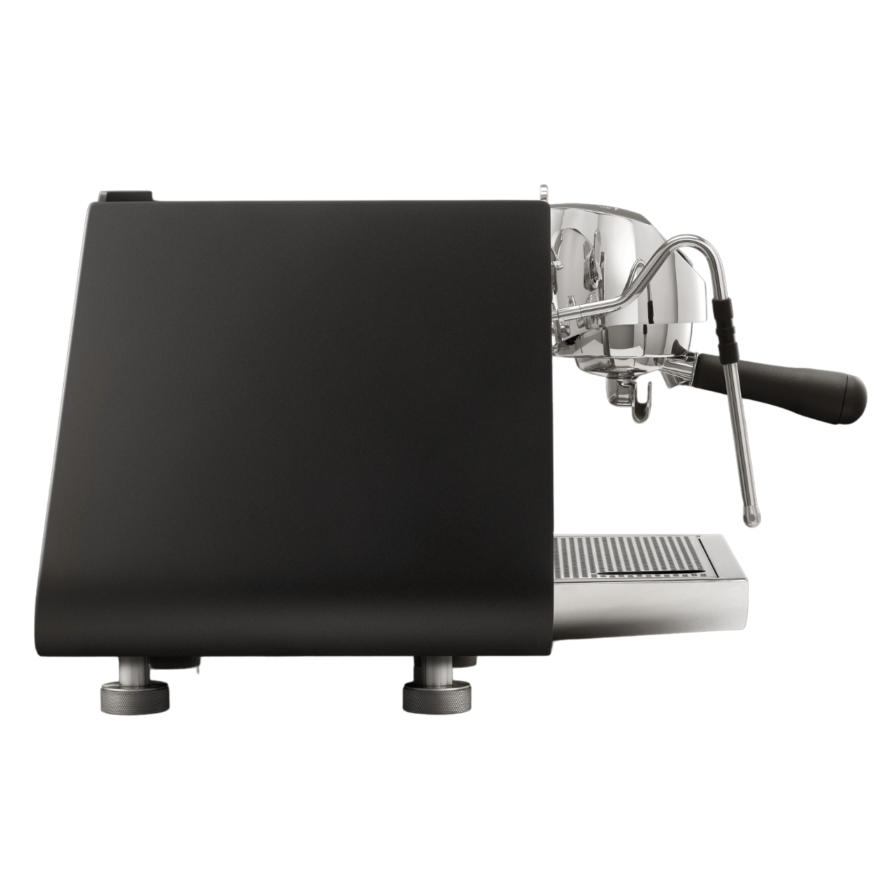 “NEO” engineering (New Engine Optimization) utilizes dual insulated boilers, thereby reducing heat dispersion and energy consumption, while the instant heating system for the coffee boiler heats only the necessary amount of water for each extraction. The brew group has a blacked-out “Ghost Display” for displaying & programming basic machine features with incorporated shot timer during brewing.