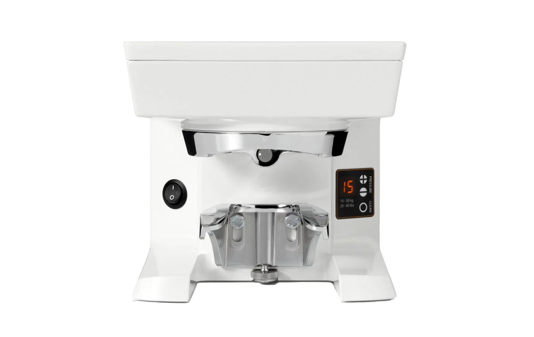 PUQpress M2 electronic tamping system enhances your workflow and eliminate barista fatigue. Featuring electronically adjustable pressure settings, it ensures consistent tamping with every use. The M2 conveniently mounts beneath your Nuova Simonelli or Victoria Arduino Mythos grinder, saving valuable counter space and enhancing efficiency. The new Generation 5 model includes a quieter motor for a better user experience.