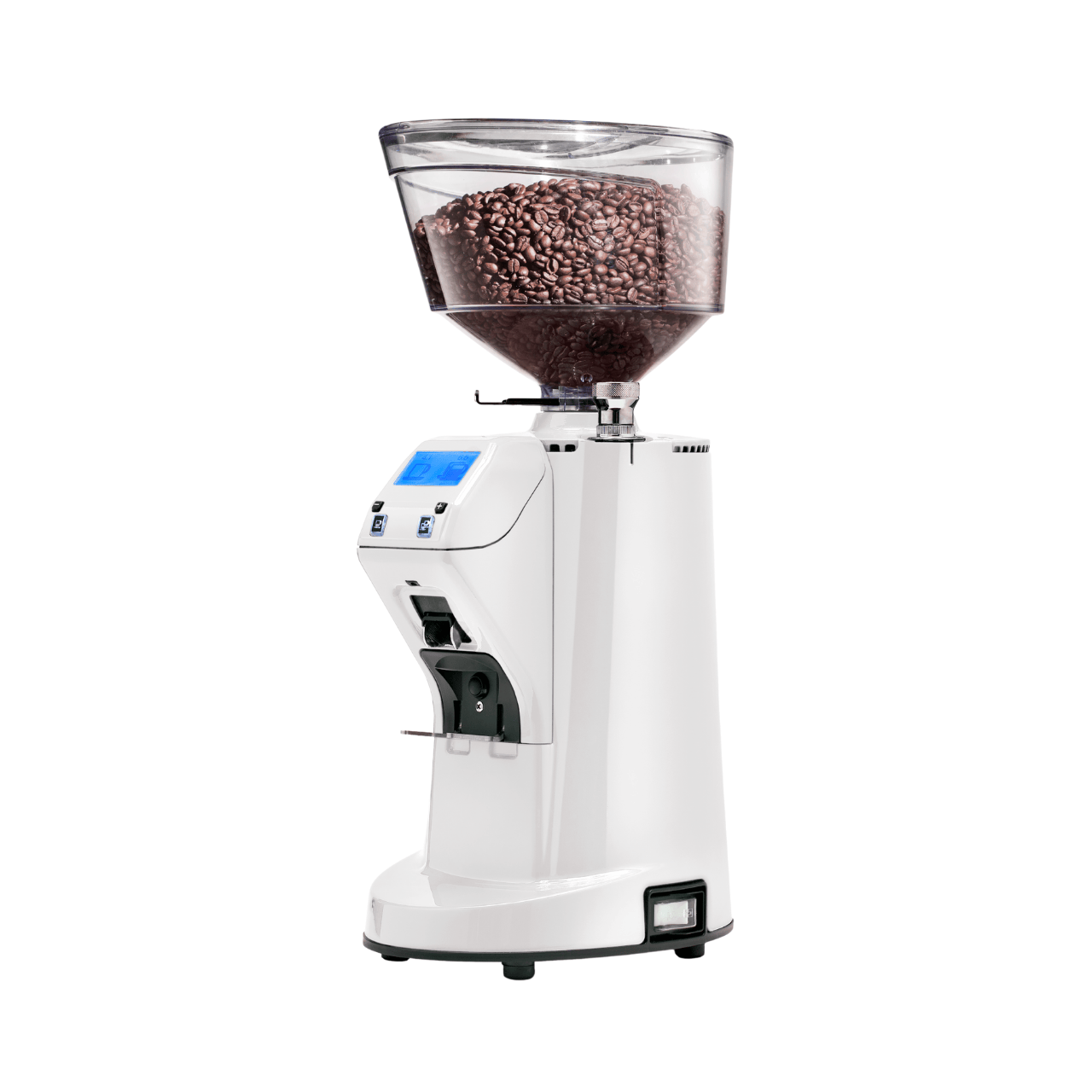 Its programmable dose settings are easily adjusted (on the fly) and its doser-less design means every shot is fresh-ground directly into your portafilter in a neat pile, hands-free. Large 65mm burrs, micrometric grind adjustments (to dial in that perfect grind), and a work light complete the package. Available in Matte Black, Pearl White or Victoria Red finish.